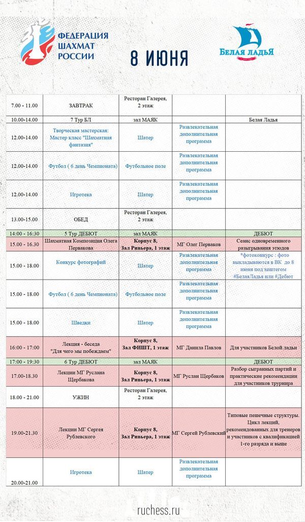 Программа "Белой ладьи" в четверг 8 июня: