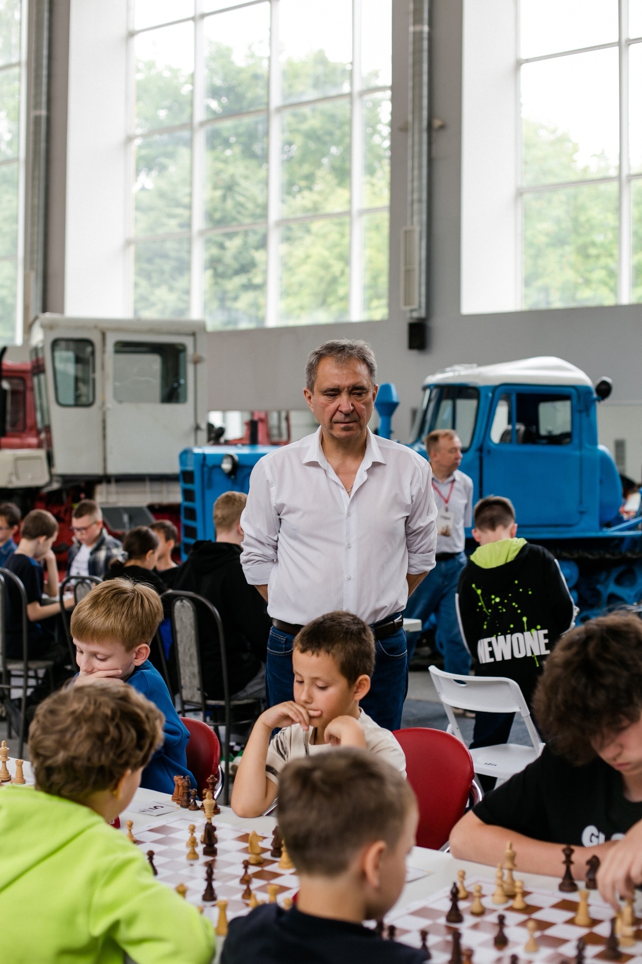 Главной особенностью мероприятия стала атмосфера, созданная самим местом проведения. Так, ребята могли наблюдать рядом с шахматными столами легендарные модели тракторов разных эпох, иллюстрирующие развитие отечественного машиностроения.