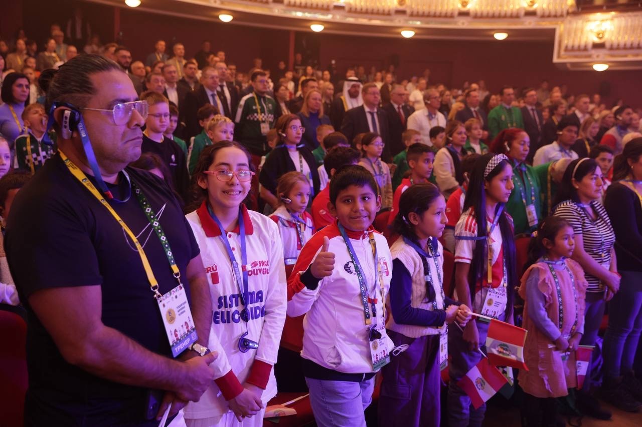 12:40. На сцене - парад стран-участниц. Тренеры и капитаны команд, одетые в национальные костюмы, делают почетный круг под аплодисменты. Танцы и музыка прекрасны.