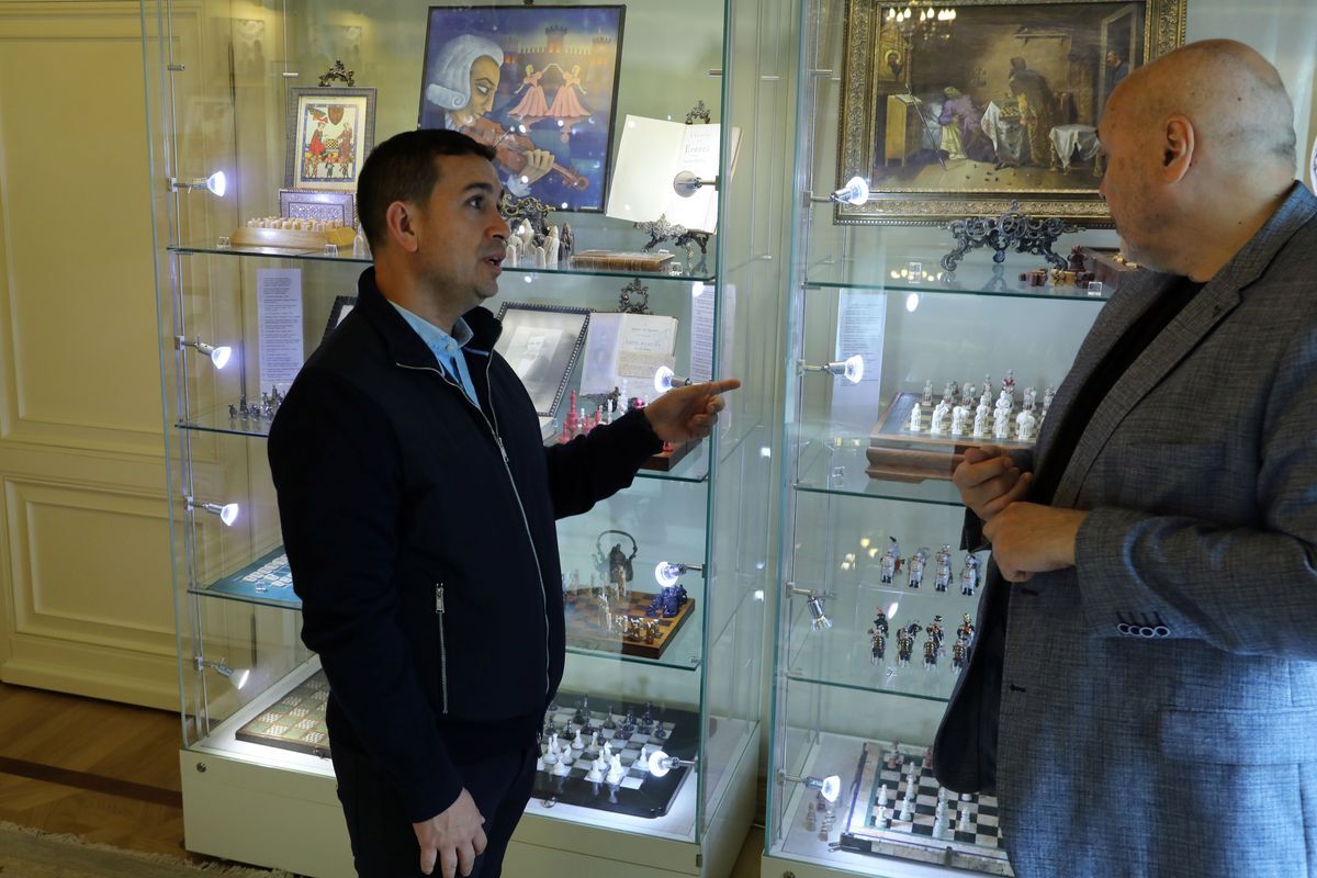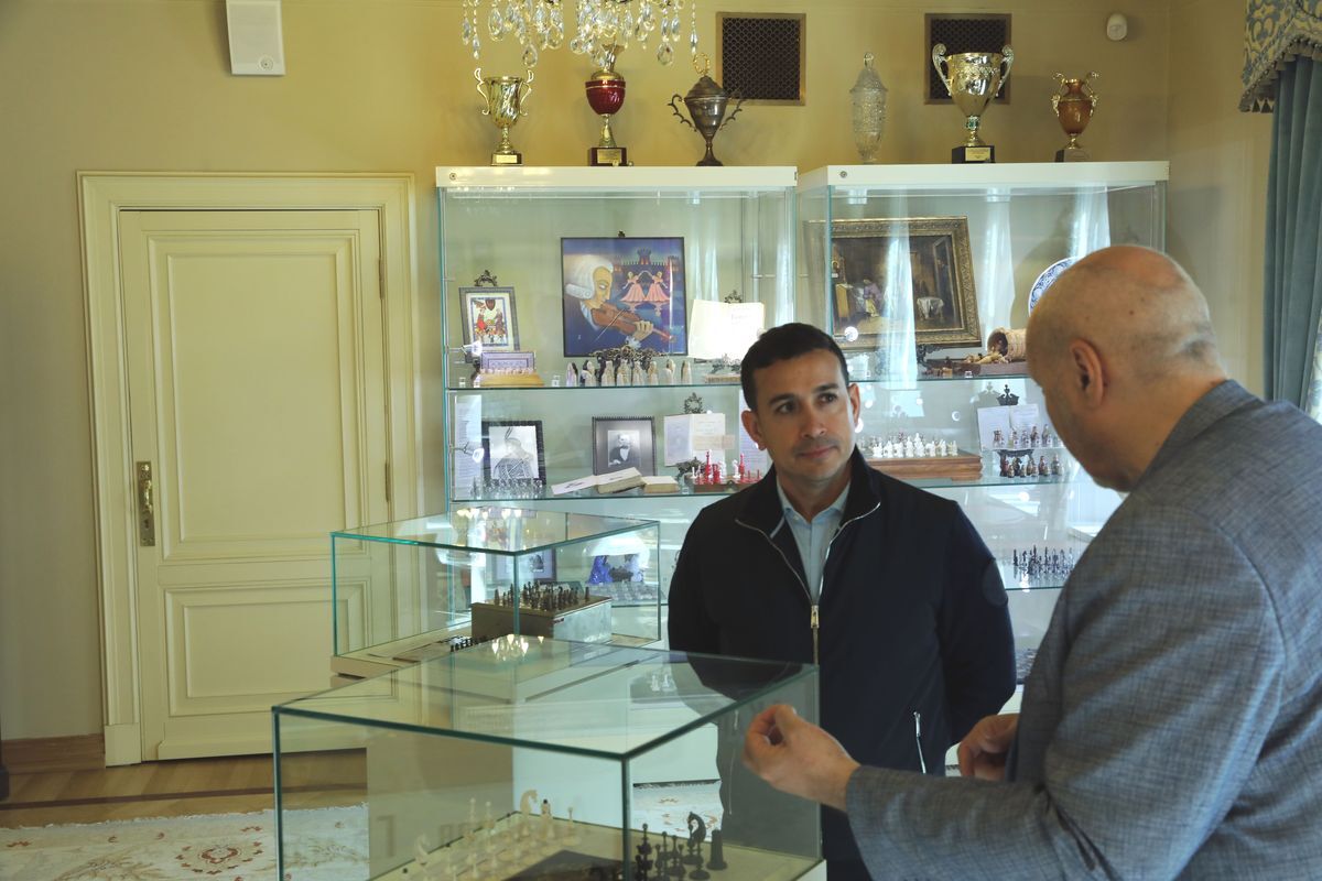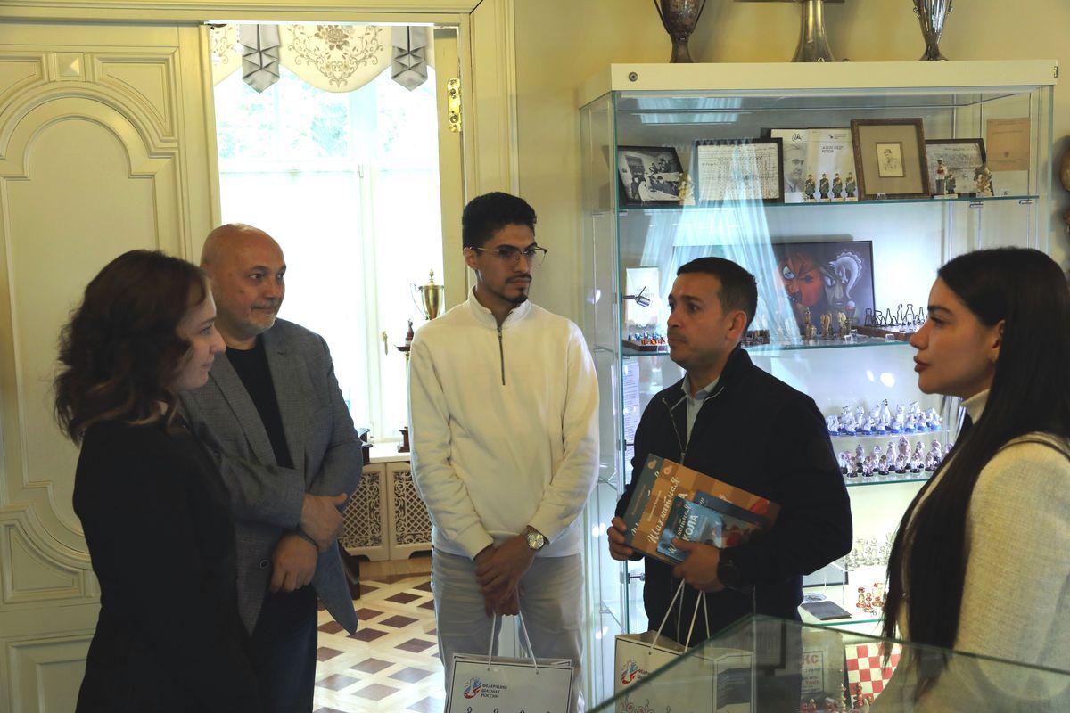 В субботу 17 мая президент Федерации шахмат Венесуэлы Иоганн Альварес Маркес (он является заместителем министра внешней торговли Венесуэлы и национальным суперинтендантом особых экономических зон) посетил Музей шахмат ФШР. Директор музея кандидат исторических наук Дмитрий Олейников познакомил гостя с самыми интересными экспонатами богатой коллекции музея.